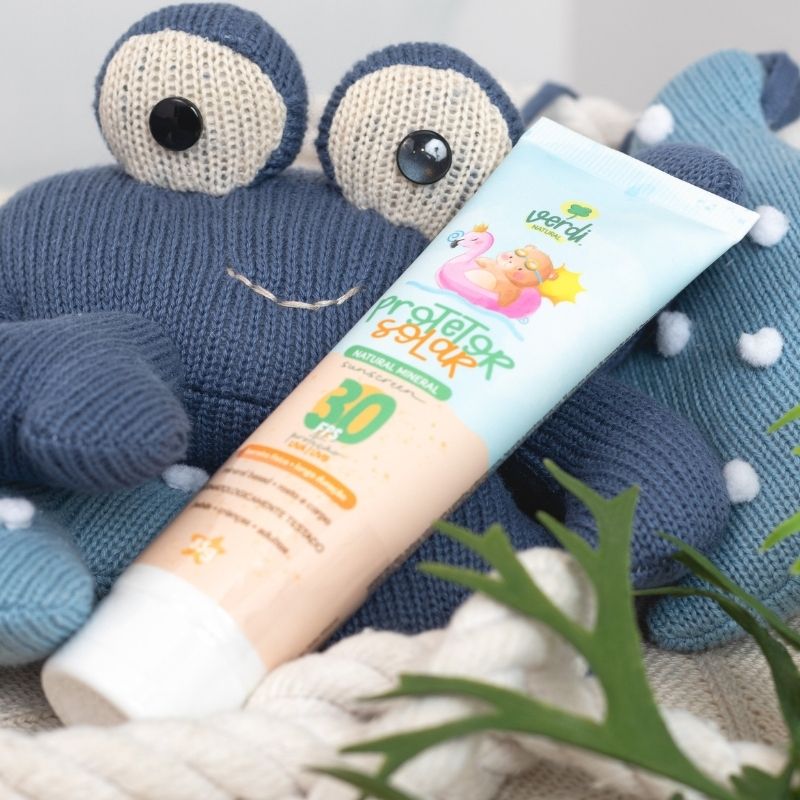 Usar protetor solar é importante em todas as estações do ano. Por isso, escolha sempre o mais seguro para o seu filho. Esse protetor solar é físico, ou seja, NÃO penetra na pele e assim não é absorvido pelo organismo, reduzindo as chances de alergia. Já que sua formulação não se funde com a pele, o protetor físico é indicado para bebês a partir dos 6 meses de idade, crianças, pessoas alérgicas e grávidas.